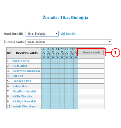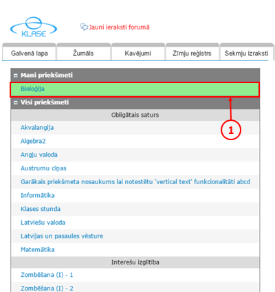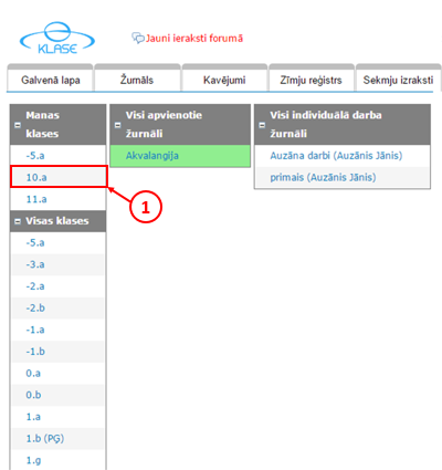Jāatver žurnāls un jāizvēlas klase, kuras skolēnu rezultāti tiks pārnesti uz E-klasi (1).