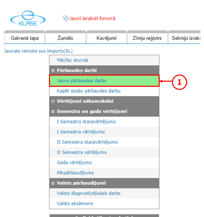 Tālāk jāizvēlas iespēja "Jauns pārbaudes darbs" (1).