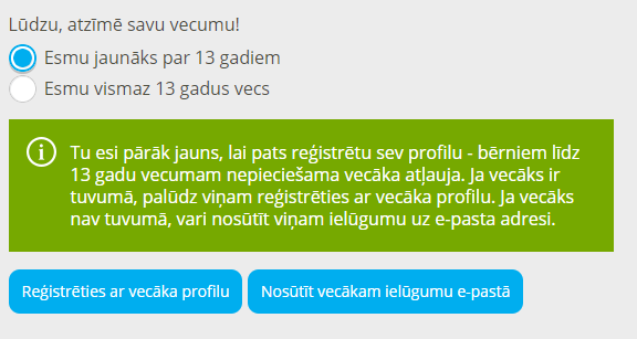 Atļauju bērns var saņemt, vecākam reģistrējoties portālā un pievienojot bērna profilu savam profilam. Lai paātrinātu atļauju saņemšanas procesu, piedāvājam Jums informāciju, ko izsūtīt vecākiem: Kā iegūt vecāku atļaujas