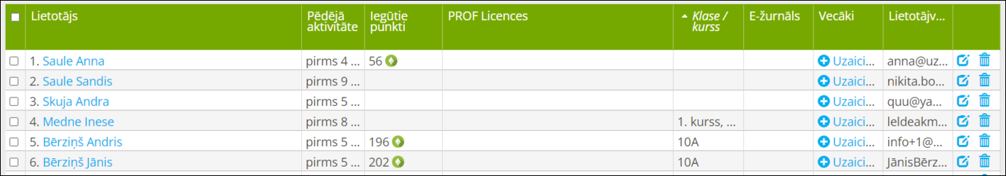 - Lai redzētu skolā reģistrēto skolotāju sarakstu, no visu lietotāju saraksta jāatlasa lietotāji ar lomu "Skolotājs"