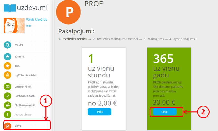 Lai iegādātos PROF, nepieciešams: