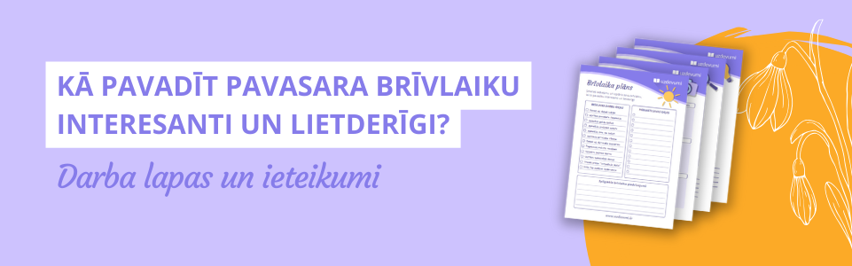 Negarlaikojies! Izmanto Uzdevumi.lv darba lapas, kurās ir iekļautas idejas pavasara brīvlaika pavadīšanai! |