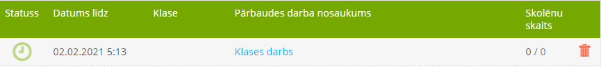 Kad darbs būs ieplānots, sadaļas “Pārbaudes darbi” kolonnā “Statuss”, būs redzama pulksteņa ikona.