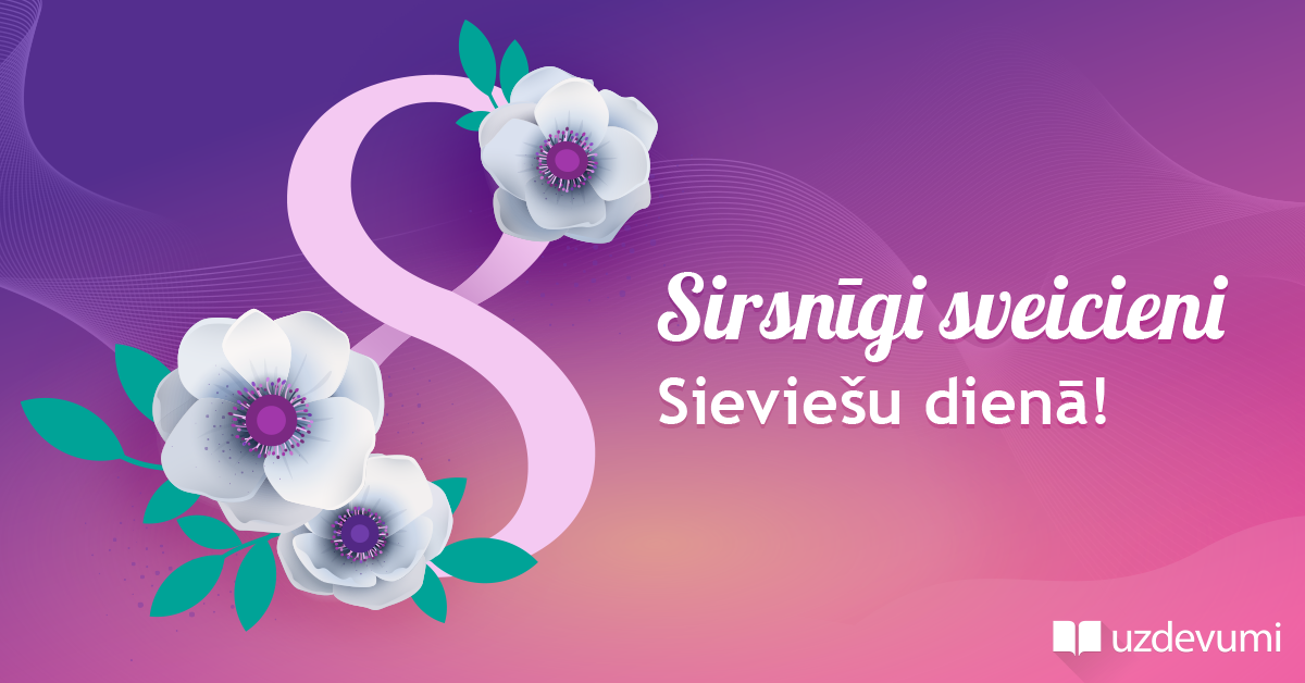 Marts, kā ierasts, nāk ar pavasara smaržu, putnu dziesmām un Sieviešu dienu. Šajā īpašajā dienā vēlamies teikt paldies par jūsu atbalstu, sapratni, sirsnību un burvīgajiem smaidiem. Lai ikkatrs zieds un katrs vārds, kas šodien tiek veltīts jums, iepriecina un liek justies īpašām! Novēlam caur ikdienas steigu, rūpēm un raizēm, ieraudzīt sevī īpašo, skaisto un patieso!