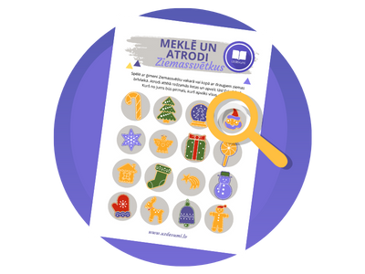 SPĒLE "MEKLĒ UN ATRODI" Ziemassvētku vakarā, kādā ciemošanās reizē pie radiniekiem vai ziemīgas pastaigas laikā kopā ar draugiem - uzspēlējiet spēli, kurā uzvarēs vērīgākais no jums. Atrodiet attēlā redzamās lietas un apvelciet tās! Kurš no jums būs pirmais, kurš apvilks visus attēlus? Lejupielādēt darba lapu |