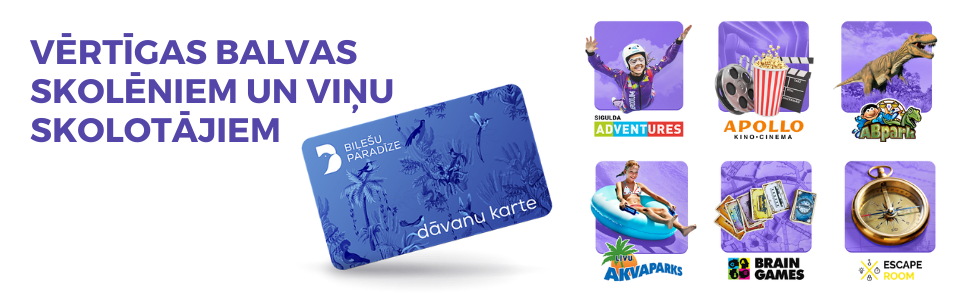 Balva matemātikas priekšmeta skolotājiem - dāvanu karte no "Biļešu paradīzes" 30-50 EUR vērtībā, ja viņu skolēni ieguvuši 1.-3. vietu konkursā.