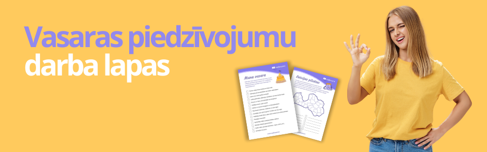 Šorīt skolēni pēc vasaras brīvlaika atkal mēroja ceļu uz skolu, lai uzsāktu mācības, taču kādu laiku tiem galvā vēl būs aizvadītās vasaras prieki un neaizmirstamie piedzīvojumi. Kāds apceļojis Latviju, kāds pavadījis vasaru sportojot un vēl kāds apguvis jaunas prasmes vai hobijus. Lai pēc garajām brīvdienām gan Jūs, gan skolēni vieglāk varētu ieiet atpakaļ mācību ritmā, piedāvājam kopīgi izpildīt darba lapas par vasaras piedzīvojumiem!