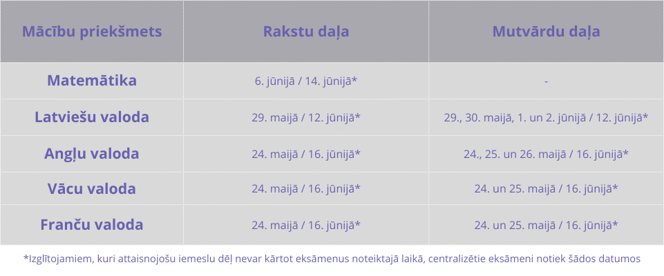 Saglabājiet eksāmenu grafiku! Esam sagatavojuši A4 plakātu PDF formātā ērtākai informācijas pārsūtīšanai, saglabāšanai un drukai.
