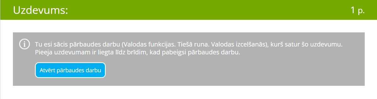 - Piekļuve uzdevumiem Virtuālajā skolā, kas iekļauti skolēna pārbaudes darbā, ir bloķēta.