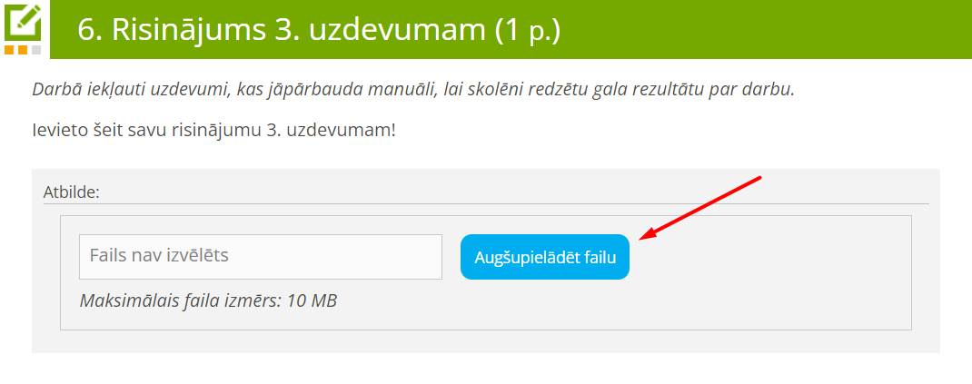 - Jāizvēlas uzdevuma tips “Atbilde ar failu”