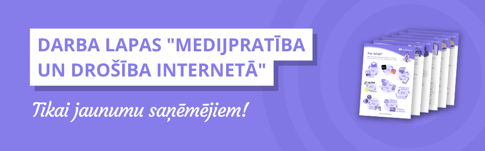 Darba lapās par medijpratību atradīsiet dažāda veida uzdevumus individuālam vai grupu darbam klasē, kā arī papildu noderīgu informāciju, gatavojoties audzināšanas stundām.