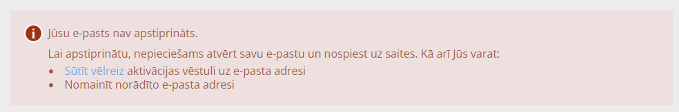 Svarīgi! Lai saņemtu darba lapas un jaunumu vēstules, Jūsu e-pasta adresei ir jābūt apstiprinātai. Ja e-pasta adrese ir norādīta, bet nav apstiprināta, jāveic šādi soļi: