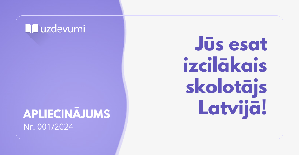 Latvijā izcilākais skolotājs esat Jūs - tas, kurš ar degsmi un mērķtiecību ik dienas iedvesmo savus audzēkņus, dalās zināšanās, sniedz atbalstu sarežģītās situācijās un veido vidi, kurā skolēni jūtas droši un var attīstīties.