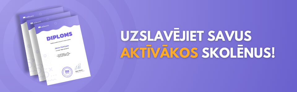 Uzslavējiet savus aktīvākos skolēnus semestra beigās, pasniedzot viņiem personalizētu Uzdevumi.lv diplomu!