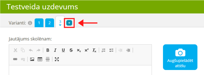 - Tālāk klikšķiniet uz "+" ikonas, lai pievienotu uzdevumam jaunu (tukšu) variantu. Varianti tiek numurēti automātiski "1", "2" utt.