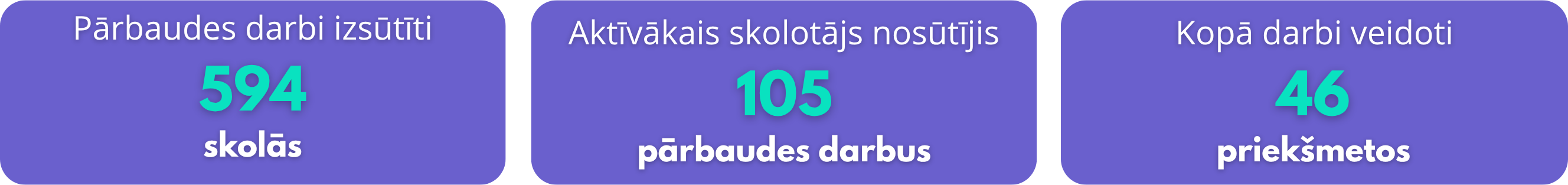 Atgādinām, ka līdz 2025. gada 31. decembrim norisinās pārbaudes darbu izaicinājums, kurā varat laimēt vērtīgas balvas! Lai uz tām pretendētu, izaicinājuma periodā Jums portālā jāizveido un jānosūta skolēniem vismaz 40 digitāli pārbaudes darbi.
