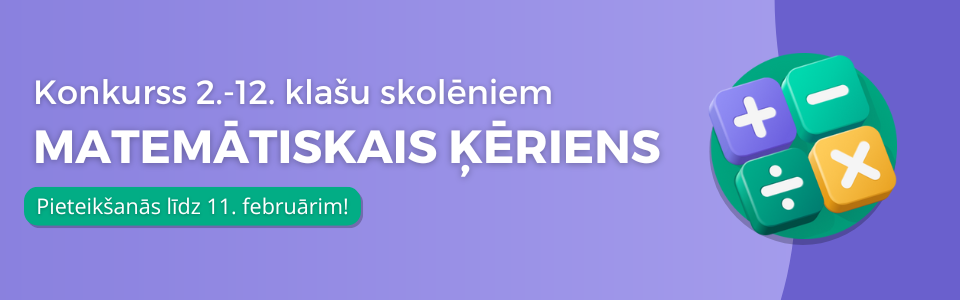 Sākusies pieteikšanās lielākajam un gaidītākajam matemātikas konkursam "Matemātiskais ķēriens"! Tas ir piemērots gan individuālai dalībai, gan kā aizraujoša klases aktivitāte, kas apvieno mācīšanos ar jautru un izaicinošu matemātikas pieredzi. Konkurss piedāvā vērtīgas balvas gan skolēniem, gan skolotājiem, un tajā aicināti piedalīties visi 2.-12. klašu skolēni un tehnikumu studenti, neatkarīgi no zināšanu līmeņa vai iepriekšējās pieredzes.