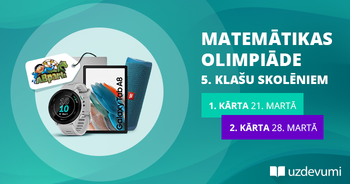 Lai paaugstinātu skolēnu zināšanas un veicinātu interesi par eksaktajiem mācību priekšmetiem, Uzdevumi.lv rīko matemātikas olimpiādi 5. klašu skolēniem. Skolēnus dalībai olimpiādē var pieteikt viņu vecāki vai skolotāji. Pieteikumi dalībai olimpiādē jāiesniedz līdz 2022. gada 13. martam. Dalībnieku atlases process norisināsies no 14. marta līdz 15. martam. Informācija par reģistrācijas apstiprināšanu tiks nosūtīta uz skolēna un vecāka e-pasta adresi 16. martā.