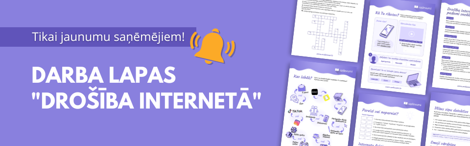 Parūpējieties par bērna drošību internetā! Tikai līdz 24. novembrim pierakstieties Uzdevumi.lv jaunumiem savā vecāka profilā un saņemiet īpašu bezmaksas darba lapu komplektu!