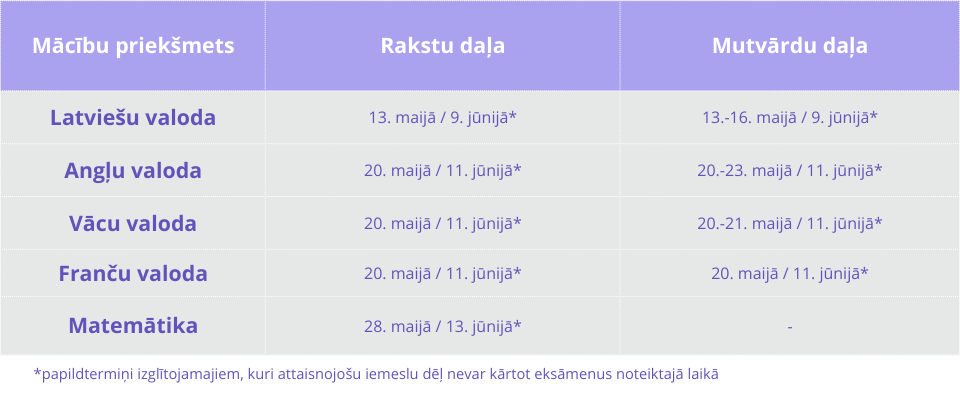 Saglabājiet eksāmenu grafiku! Lejupielādējiet A4 plakātu PDF formātā - to varat viegli saglabāt, izdrukāt vai nosūtīt bērnam un citiem vecākiem.