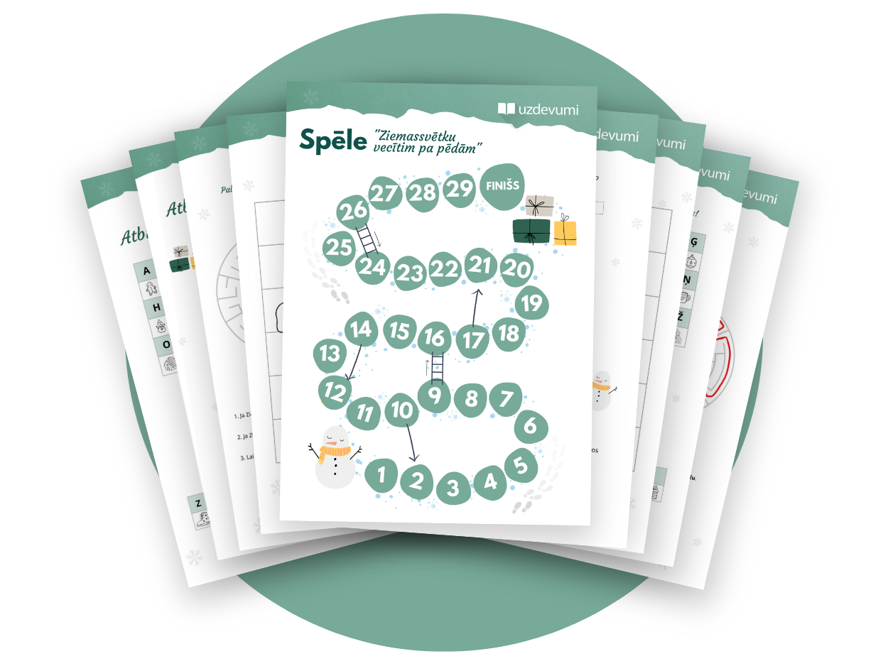 Jaunums! Tematiskas ziemas spēlesIzklaidējošas aktivitātes visai ģimenei - ziemīgi uzdevumi un spēles! Palīdziet Ziemassvētku vecītim atrast pazudušās mantas, risiniet krustvārdu mīklas, pabeidziet Ziemassvētku ticējumus un izkrāsojiet piparkūku mājiņas vai vīriņus. |