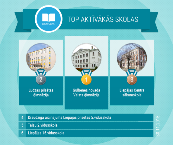 Uzdevumi.lv skolu TOP līderu saraksts (30.11.2015.):