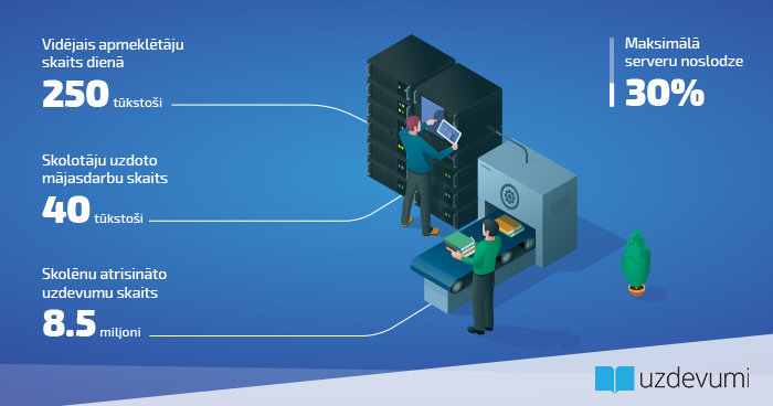 Paredzot milzīgu lietotāju skaita pieplūdumu, nedēļas sākumā tika palielināta Uzdevumi.lv serveru jauda, lai lielās plūsmas dēļ netiktu negatīvi ietekmēta iespēja izmantot portālu. Pateicoties Microsoft Azure datu centram, pārrāvums portāla darbībā bija vien uz īsu brīdi, kad tehniski notika pārslēgšanās uz lielākām servera jaudām. Kopš pirmdienas tehniskas dabas problēmas nav novērotas un serveru maksimālā noslodze ir 30%.