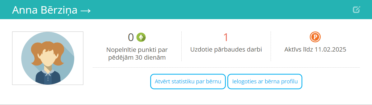 Sekot līdzi bērna rezultātiem var sadaļā "Mani bērni", uzklikšķinot uz iespējas "Atvērt statistiku par bērnu".