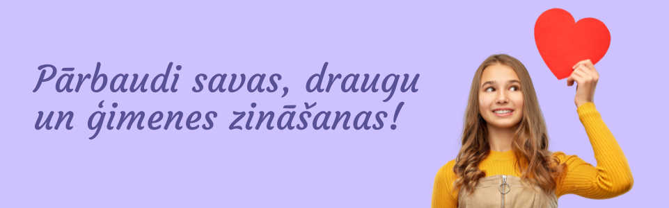 Valentīndiena gandrīz jau klāt! Piedāvājam to sagaidīt, ar draugiem un ģimeni kopā risinot Valentīndienas testu par dažādām interesantām un izzinošām tēmām!