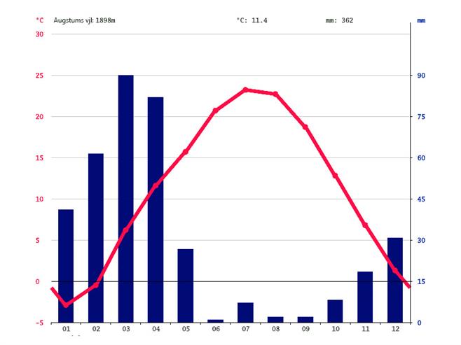 Izvēlies klimatogrammu, kas vislabāk raksturo klimatu taigas (skujkoku mežu) biomā!