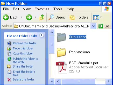 Dublēšanu var veikt arī citos veidos, piemēram, pieturot taustiņu CTRL, "pārvelk" ar peli no vienas mapes otrā.