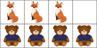 Atzīmē, kurā tabulā ir tikpat daudz kūkas un konfektes, cik attēlā!