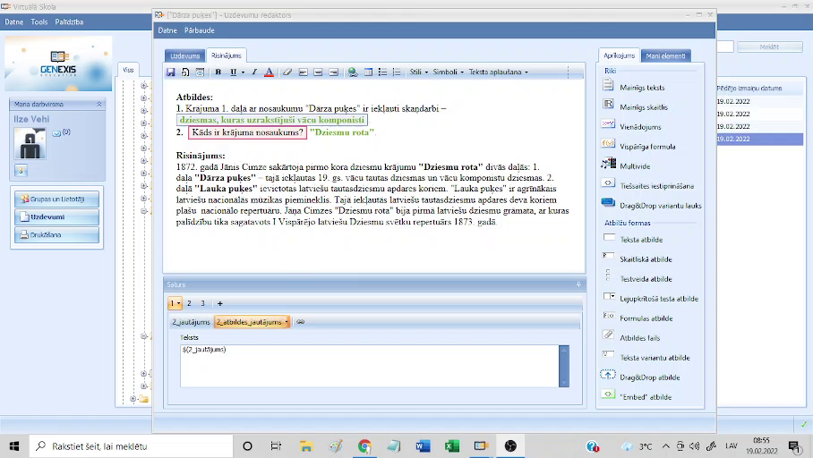 Risinājuma soļu atbildes saskaņošana ar jautājumu